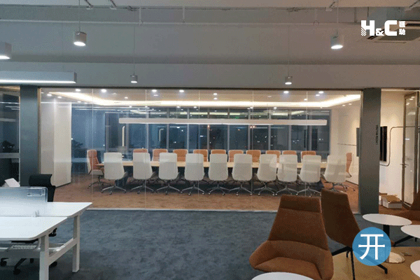 地點:廣州市天河區(qū)海安路 應(yīng)用:調(diào)光玻璃辦公室隔斷